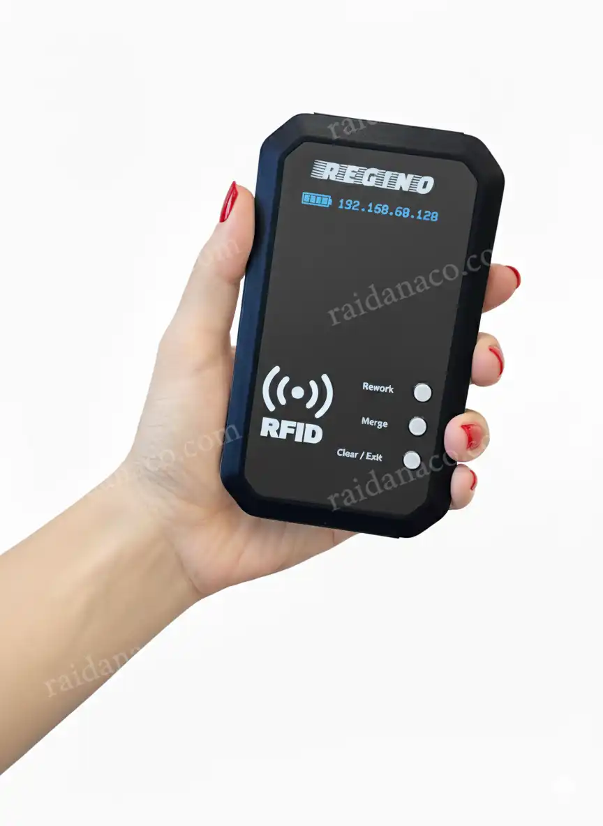 رجینو — دستگاه ردیابی و ثبت تولید صنعتی رجینو (Regino) یک دستگاه نوآورانه برای ردیابی مراحل تولید، ثبت اطلاعات عملیات و کنترل فرآیند در خطوط مونتاژ است. این دستگاه با تکیه بر فناوری RFID و ارتباط Wi-Fi، دادههای مربوط به هر ایستگاه تولید را بهصورت لحظهای در بانک اطلاعاتی SQL Server ذخیره میکند و به مدیران امکان نظارت دقیق بر عملکرد تولید را میدهد.